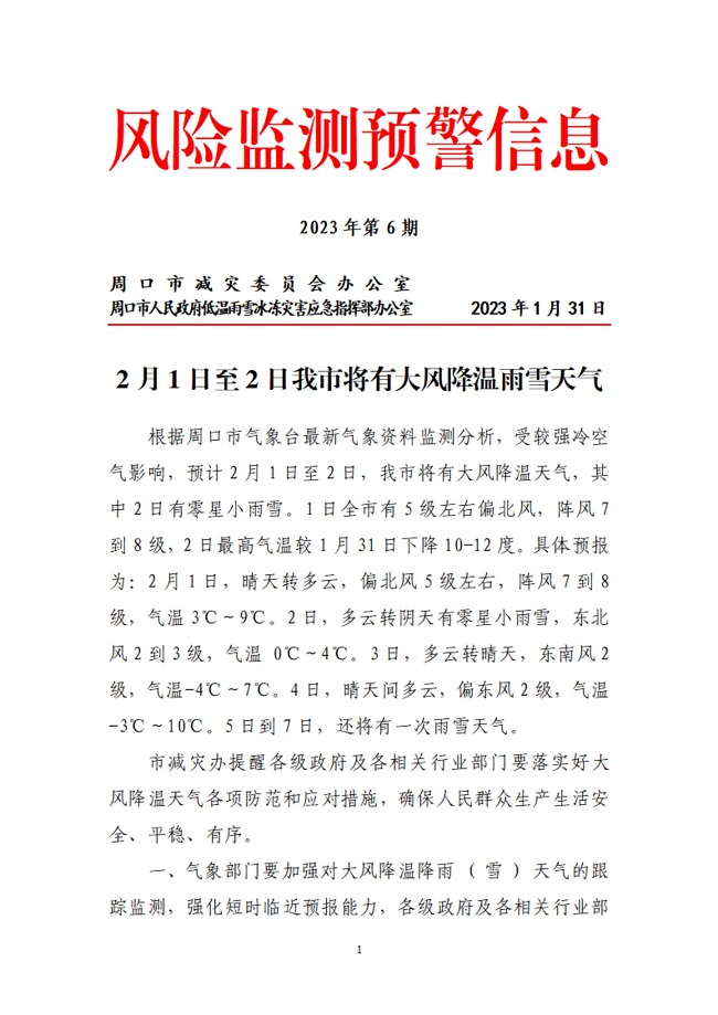 周口市风险监测信息2023年第6期