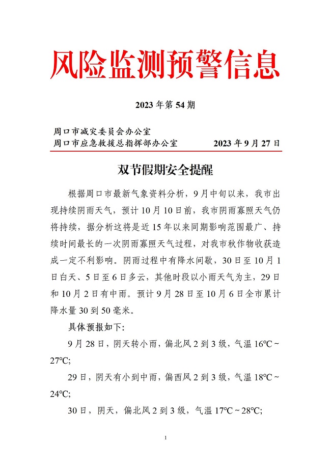 周口市风险监测信息2023年第54期