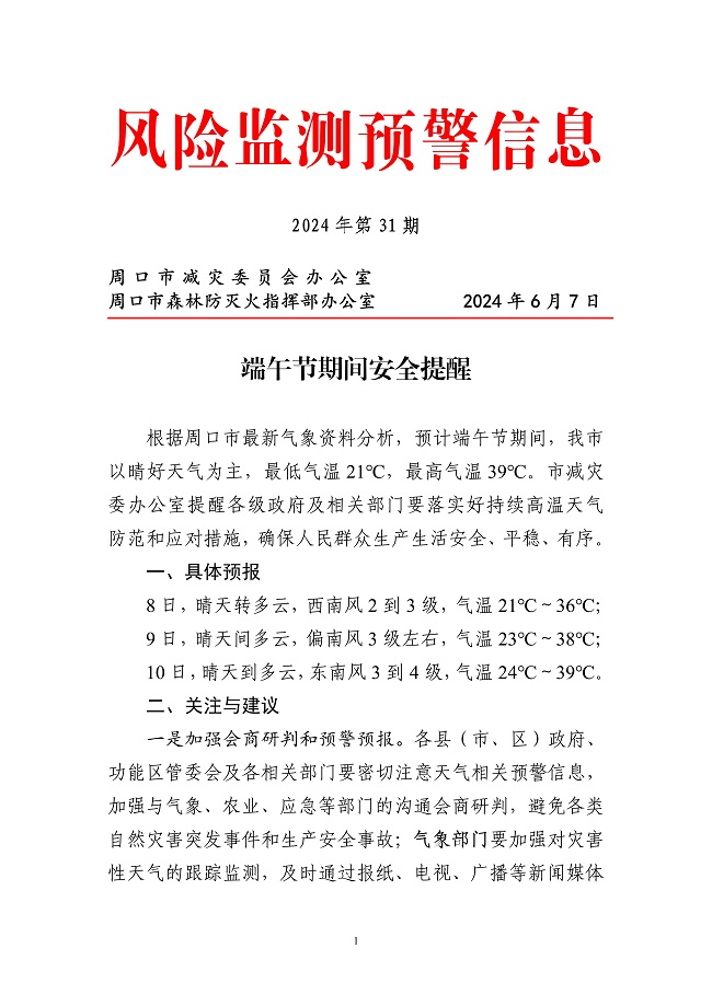 周口市风险监测信息2024年第31期
