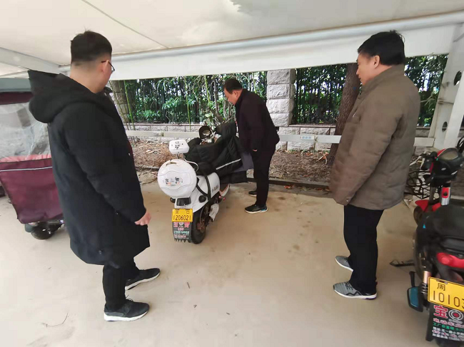 1月2日,周口市人防办韩平军副主任带假期值班人员杨保雷、程彦举、王琦、张伟开展自查工作,自查本单位综合办公楼,院内电动车停放点,单位食堂用火用电操作间等,现场检查发现电动车停放点有乱扯电线充电现象,检查人员现场把电源切断,消除安全隐患,并对电动车充电人员教育,并对假期值班人员提出要求加强巡视巡查。