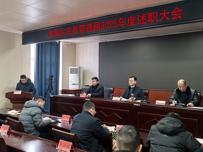 为全面梳理总结2025年度各项工作,科学谋划部署2026年重点任务,进一步凝聚共识、激发干劲,1月23日,淮阳区应急管理局组织召开2025年度股室负责人述职评议会议。局领导班子成员、全体干部职工参加。