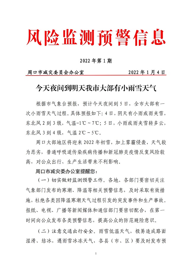周口市风险监测信息2022第1期
